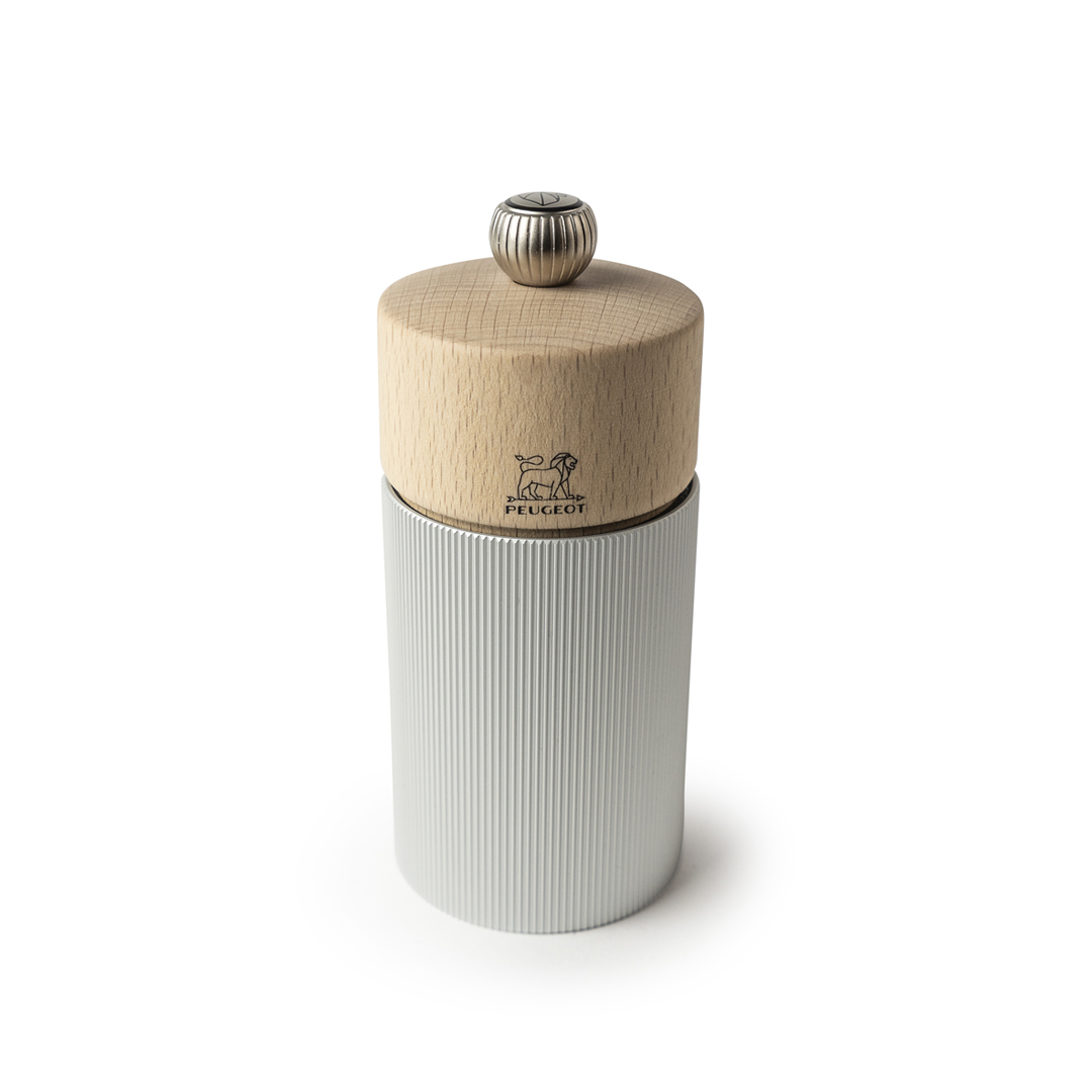 Mlinček za poper Line Natural (12 cm) združuje čudovito skandinavsko estetiko z vrhunsko funkcionalnostjo. Njegovo ohišje iz črtastega svetlosivega aluminija in vrh iz naravnega lesa izžarevata sodoben šarm in toplino naravnih materialov. Mlinček je popoln dodatek za mizo ali kuhinjo, saj ponuja stilsko kombinacijo materialov in vrhunski grafični učinek. Peugeotov jekleni mehanizem, z doživljenjsko garancijo, je primeren za mletje zrn črnega, belega, zelenega, rdečega in roza popra ter koriandrovih zrn. S pomočjo vijaka oz. gumba prilagajate grobost - bolj kot je gumb zategnjen, bolj fino mlet je poper. Les uporabljen na vrhu mlinčka je pridobljen iz francoskih gozdov s certifikatom PEFC, kar poudarja zavezanost podjetja k trajnosti in odgovornemu ravnanju z viri. NAMIG: Mlinček dopolnite z ostalimi mlinčki iz iste linije Line.