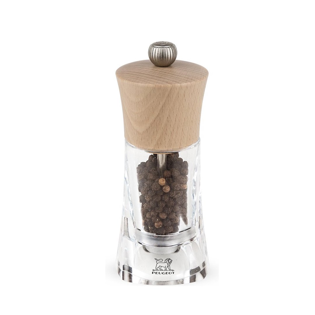Mlinček Oléron je bil zasnovan posebej za mletje popra. Mlinček Oléron je sestavljen iz prozornega telesa in glave iz bukovega lesa v naravni barvi. Z vtrenjem gumba nastavite finost mletja.