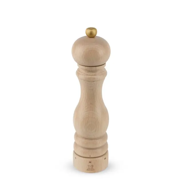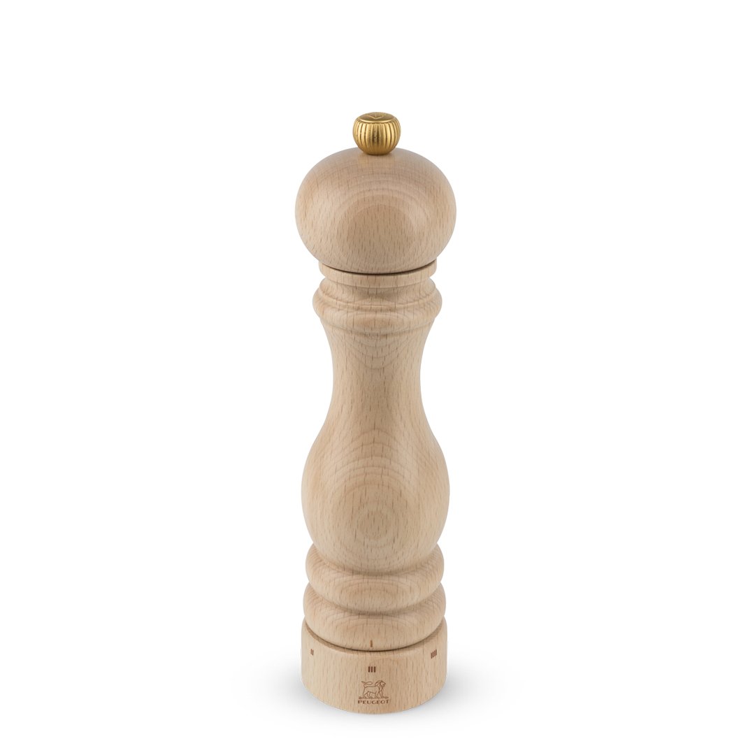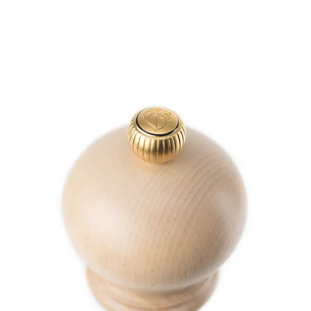 PEUGEOT MLINČEK ZA POPER PARIS NATUR je izdelan iz naravnega lesa z elegantno oblikovano silhueto, ki jo dopolnjuje zlati gumb z vgravirano levjo glavo, ki je Peugeotov prepoznavni znak.