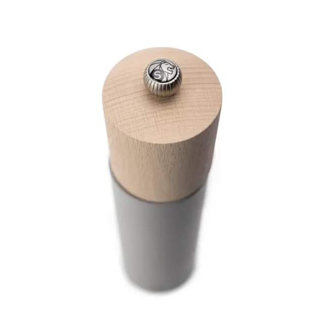 Mlinček za sol Boreal (Pebble Grey) je izdelan iz bukovega lesa s prodnato sivim zaključkom. Nežen, mat prodnato siv odtenek obdaja telo in tvori eleganten kontrast z naravnim lesenim vrhom. Opremljen je z mehanizmom Zirlion, ki je primeren za mletje suhih kristalov soli do velikosti 6 mm (ni primeren za vlažno oz. morsko sol). Ekskluzivni mehanizem je izdelan iz cirkonija, inženirskega keramičnega materiala, znanega po svoji trdnosti in vzdržljivosti. Inovacija omogoča mletje soli v ultra fino, praškasto teksturo, ki ponuja natančnost in doslednost kot še nikoli prej. Za razliko od običajnih keramičnih mlinčkov, ki se lahko pri ravnanju z gostimi ali teksturiranimi solmi odkrušijo ali obrabijo, je mehanizem Zirlion zasnovan za mletje zob na zob. Debelino mletja lahko nastavite tako, da ustreza okusu vsakogar. Privijete ali popustite gumb na vrhu mlinčka - tesneje kot je gumb privit, bolj fino mleta je sol. Mlinček Boreal je izdelan v Franciji z uporabo lesa, pridobljenega iz francoskih gozdov s certifikatom PEFC, kar poudarja zavezanost podjetja k trajnosti in odgovornemu ravnanju z viri.