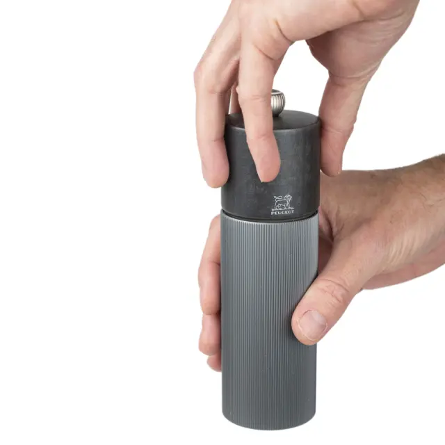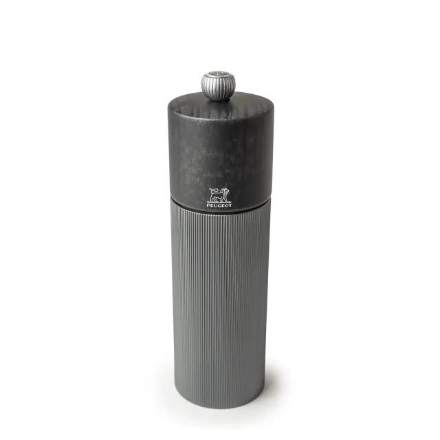 Mlinček zasol Line Dark (18 cm) združuje čudovito skandinavsko estetiko z vrhunsko funkcionalnostjo. Njegovo ohišje iz črtastega temno sivega aluminija in vrh iz sivega lesa izžarevata sodoben šarm in toplino naravnih materialov. Mlinček je popoln dodatek za mizo ali kuhinjo, saj ponuja stilsko kombinacijo materialov in vrhunski grafični učinek. Mlinček je popoln dodatek za mizo ali kuhinjo, saj ponuja stilsko kombinacijo materialov in vrhunski grafični učinek. Peugeotov jekleni mehanizem, z doživljenjsko garancijo, je primeren za mletje kamene oz. suhe soli, s kristali velikosti manjše ali enake 4 mm in ni priporočljiv za mletje morske soli. S pomočjo vijaka oz. gumba prilagajate grobost - bolj kot je gumb zategnjen, bolj fino mleta je sol. Les uporabljen na vrhu mlinčka je pridobljen iz francoskih gozdov s certifikatom PEFC, kar poudarja zavezanost podjetja k trajnosti in odgovornemu ravnanju z viri. NAMIG: Mlinček dopolnite z ostalimi mlinčki iz iste linije Line.
