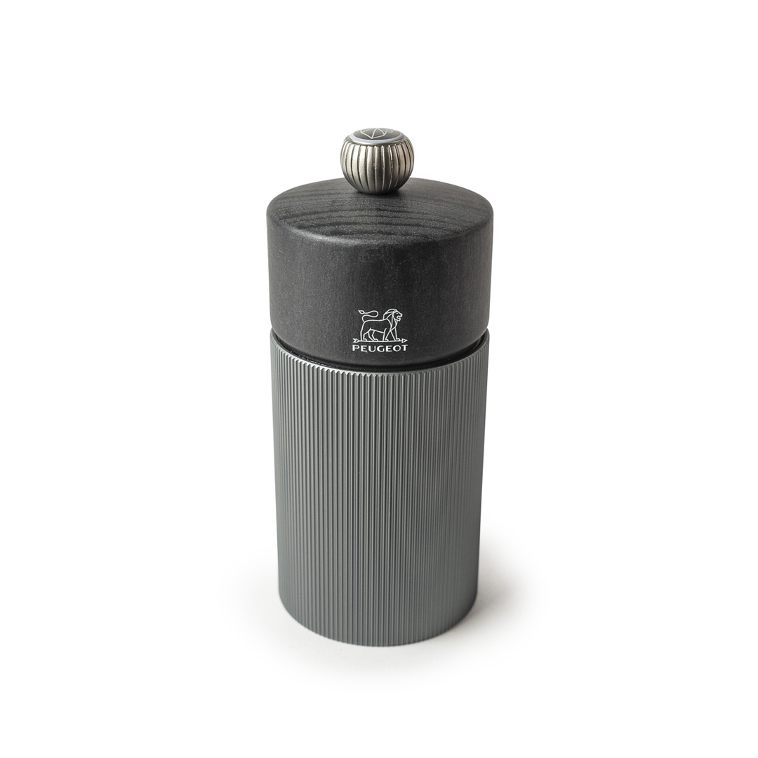Mlinček za sol Line Dark (12 cm) združuje čudovito skandinavsko estetiko z vrhunsko funkcionalnostjo. Njegovo ohišje iz črtastega temno sivega aluminija in vrh iz sivega lesa izžarevata sodoben šarm in toplino naravnih materialov. Mlinček je popoln dodatek za mizo ali kuhinjo, saj ponuja stilsko kombinacijo materialov in vrhunski grafični učinek. Peugeotov jekleni mehanizem, z doživljenjsko garancijo, je primeren za mletje kamene oz. suhe soli, s kristali velikosti manjše ali enake 4 mm in ni priporočljiv za mletje morske soli. S pomočjo vijaka oz. gumba prilagajate grobost - bolj kot je gumb zategnjen, bolj fino mleta je sol. Les uporabljen na vrhu mlinčka je pridobljen iz francoskih gozdov s certifikatom PEFC, kar poudarja zavezanost podjetja k trajnosti in odgovornemu ravnanju z viri. NAMIG: Mlinček dopolnite z ostalimi mlinčki iz iste linije Line.
