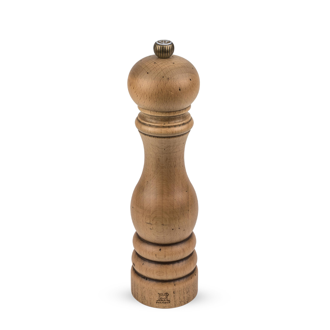 Mlinček za suho sol Paris Antique je bil ustvarjen v ikoničnem pariškem slogu, da bi se poklonil neverjetni dediščini blagovne znamke Peugeot, njenemu napredku in tehnologiji v 200 letni zgodovini. Vsak mlinček Paris Antique je izdelan ročno, z največjo natančnostjo, z uporabo bukovega lesa, ki je bil skrbno in trajnostno pridobljen iz evropskih gozdov. Gumb na vrhu mlinčka s patino mu daje videz zastarelosti in hkrati omogoča napreden sistem mletja. Z vrtenjem na gumb določate debelino mletja od finega do grobega. Tesneje je gumb privit, bolj fino mleta je sol. Mlinček s starinskim zaključkom bo navdušil zbiratelje in na mizo vnesel veliko šarma in karizme.