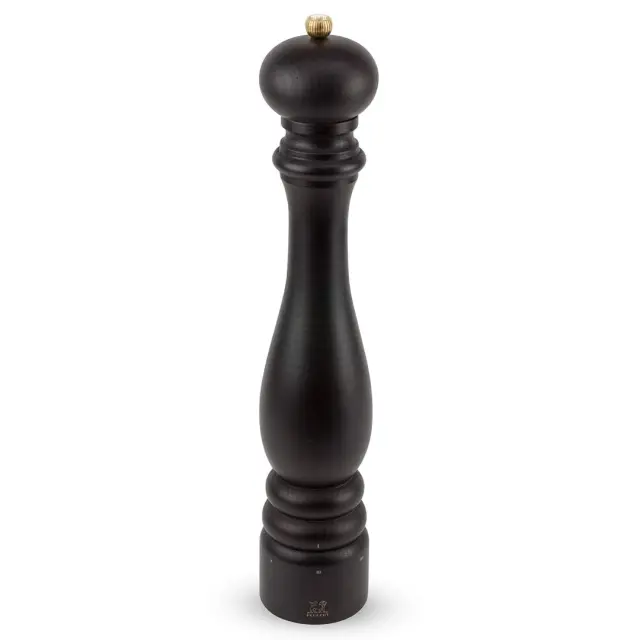 PEUGEOT MLINČEK ZA SOL PARIS CHOCOLAT je izdelan iz bukovega lesa z elegantno oblikovano silhueto, ki jo dopolnjuje zlati gumb z vgravirano levjo glavo, ki je Peugeotov prepoznavni znak.