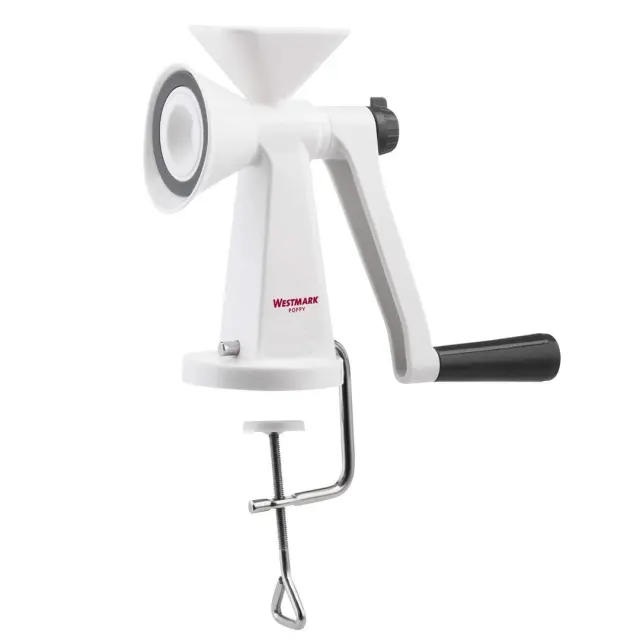 WESTMARK MLINČEK ZA ŽITO je primeren za mletje makovih, lanenih semen itd., brez napora. Ima nastavljivo grobost brušenja, namizna objemka pa mu med mletjem zagotavlja trden oprijem. Izdelan je iz bele plastike in keramičnim brusilnikom.