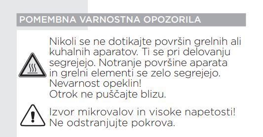 Slike o varnosti izdelka vsebujejo opozorila na embalaži izdelka in lahko vključujejo ključne varnostne informacije, povezane z določenim izdelkom.