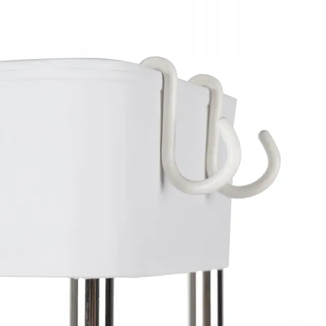 - PRAKTIČNE KAVLJICE – Kopalniški polici so priložene tudi štiri kljukice iz PP materiala , ki jih enostavno pritrdite na robove polic . Te kljukice so idealno mesto za obešanje brisač, gobic, krtač ali drugih manjših kopalniških dodatkov, kar še dodatno poveča funkcionalnost police. Dodatna prednost police so štiri vrtljiva kolesa, ki omogočajo prosto premikanje . Kolesa se vrtijo za 360 stopinj, kar zagotavlja maksimalno mobilnost in omogoča enostavno premikanje police tudi v ozkih kopalniških prostorih. Zahvaljujoč temu lahko polico preprosto premaknete tja, kjer je najbolj potrebna, ne da bi jo morali dvigniti.