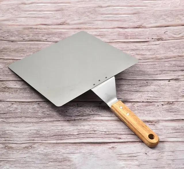 Trdna in praktična lopatica za pico in testo. Izdelan iz nerjavečega jekla, ki bo zagotovil dolgo in nemoteno uporabo. Priročen, dolg ročaj omogoča priročno vstavljanje in jemanje pice iz pečice brez nevarnosti opeklin. Vsekakor olajša peko domače pice, pa tudi kruha in drugega peciva.