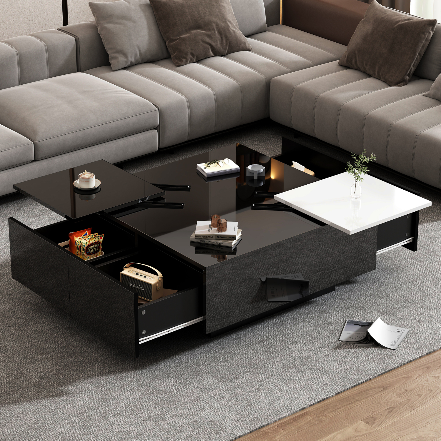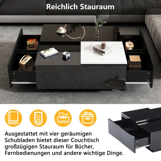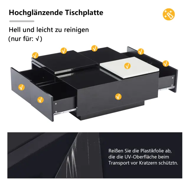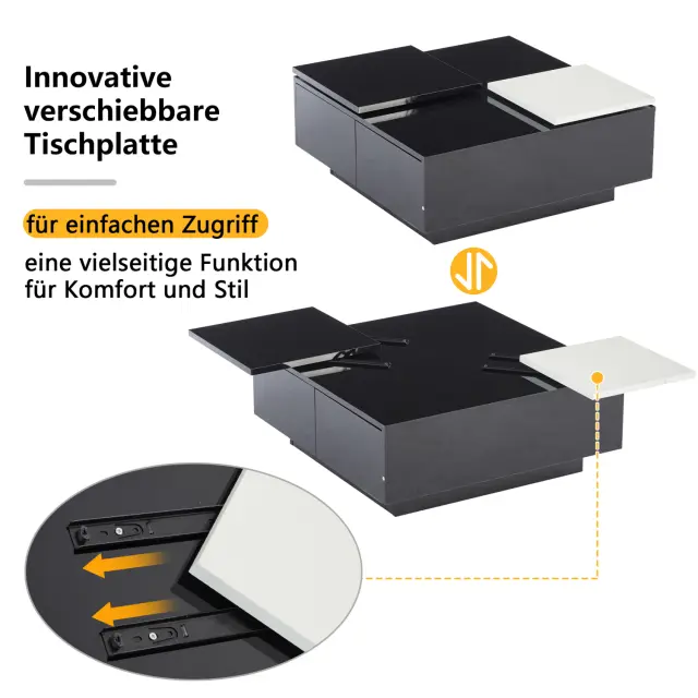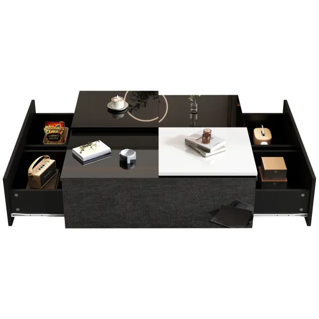 Moderna črna klubska mizica z visokim sijajem in belo površino, 75x75x33,5 cm