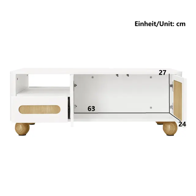 Moderna klubska mizica 105x50x40 cm - bela/leseni videz, 4 vrata, 2 predala, LED