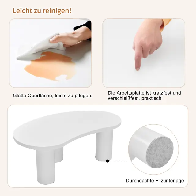 Moderna klubska mizica v obliki polmeseca, 107x57x40,5 cm, MDF/PVC, s podnožjem iz filca.