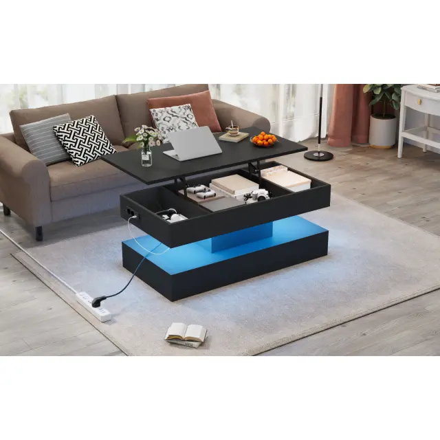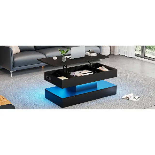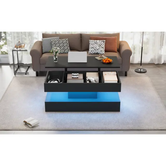 Moderna klubska mizica z LED osvetlitvijo in prostorom za shranjevanje, 100x50x42 cm