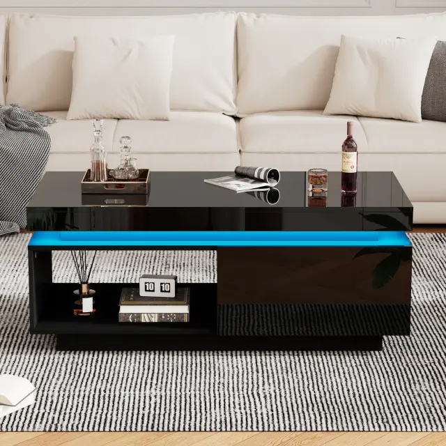 Moderna klubska mizica z visokim sijajem in LED osvetlitvijo, 100x50x40,3 cm, predal, 50 kg