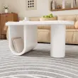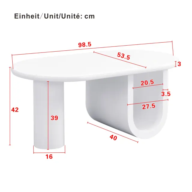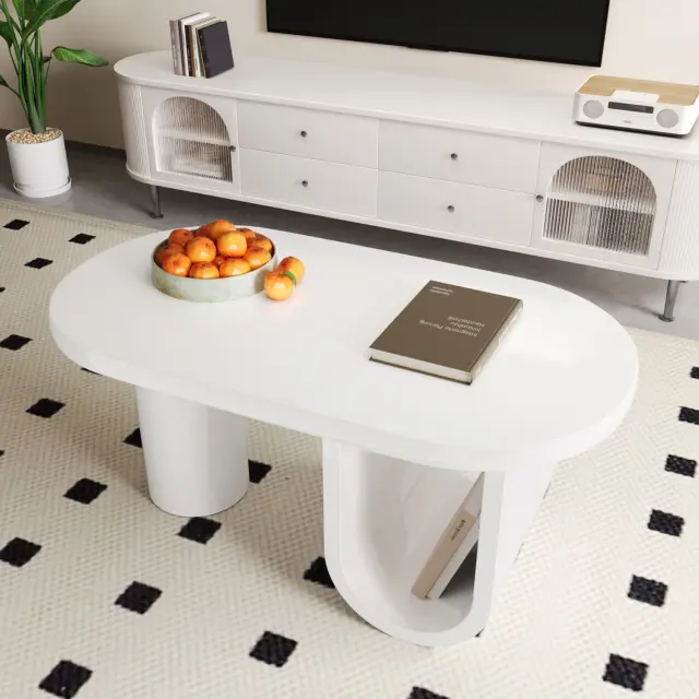 Moderna ovalna klubska mizica v beli barvi, preprost dizajn, stabilne noge v obliki črke U, 98,5x53,5x42cm.