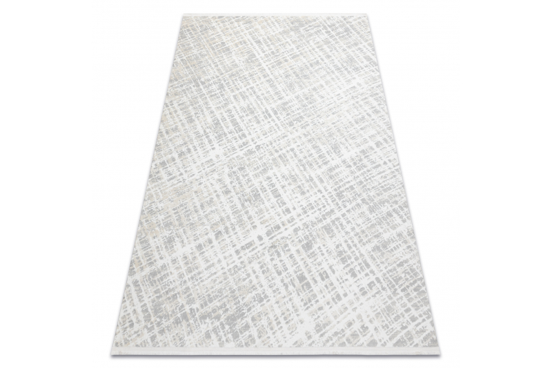 Moderna preproga DUKE 51550 krem / siva - Rešetka, strukturiran, zelo mehak, resice 180x270 cm