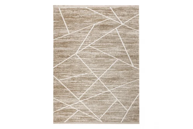 Moderna preproga DUKE 51557 bež / krem - Geometrična, strukturiran, zelo mehak, resice 240x330 cm