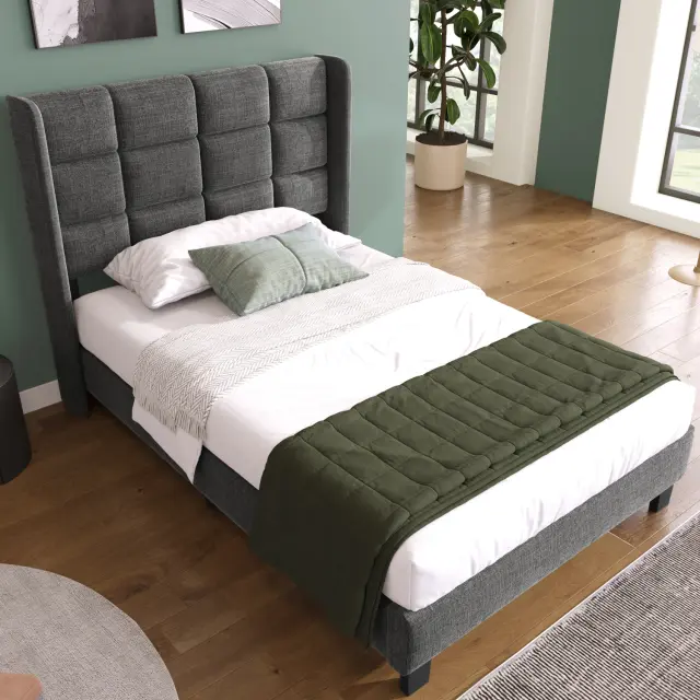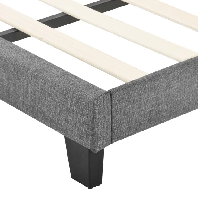 Moderna siva oblazinjena enojna postelja iz lana z letvenim okvirjem (90x200cm)