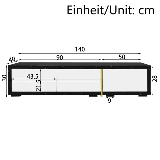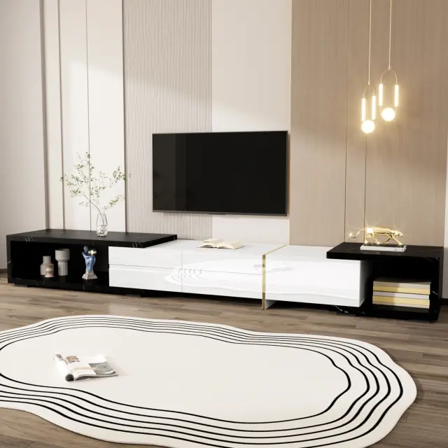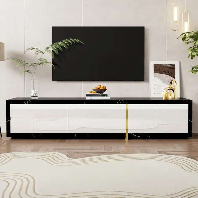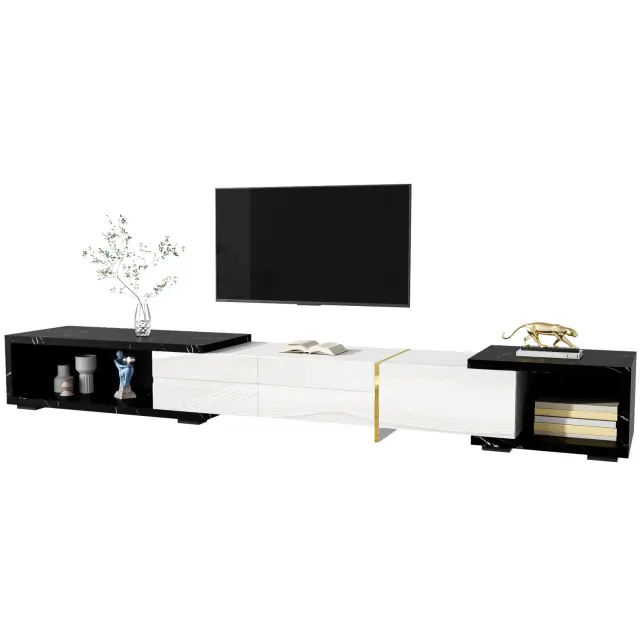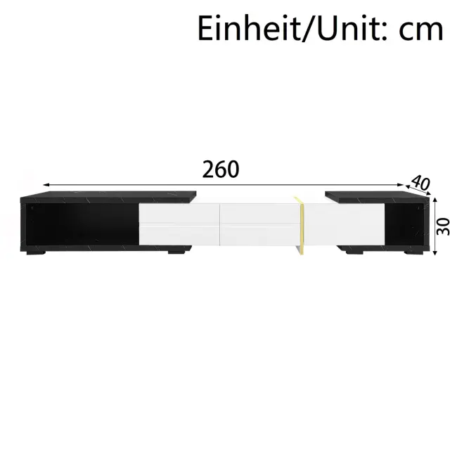 Moderna TV omarica, 140–260 cm, vrtljiva, videz marmorja, visok sijaj-mat, zlata.