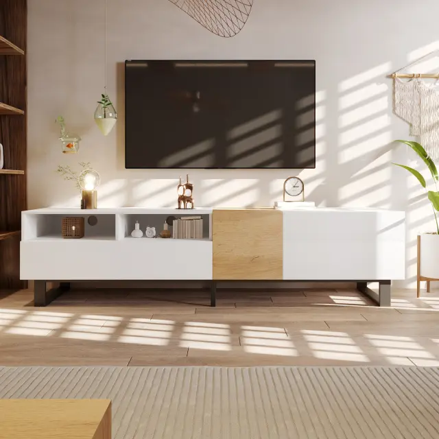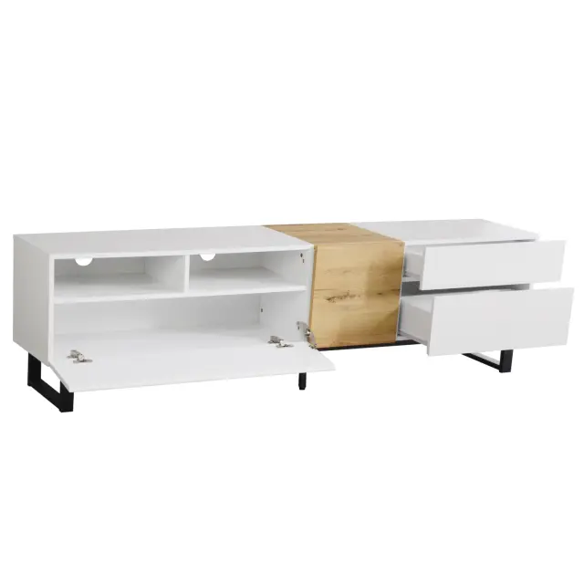 Moderna TV omarica, bela/leseni videz, 180x50x38cm, minimalistična