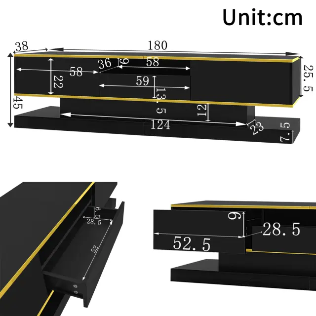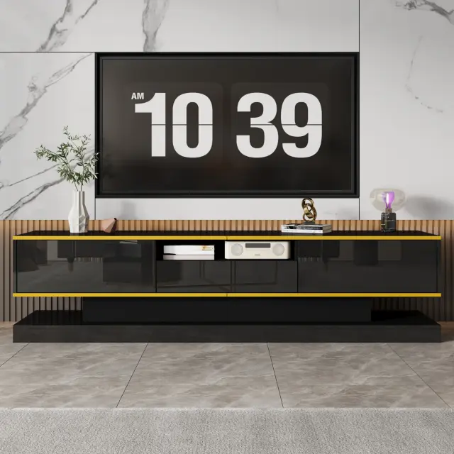 Moderna TV omarica s 3 predali, odprtim predelkom in LED lučko, 180 cm