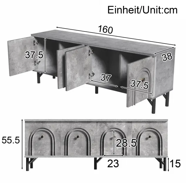 Moderna TV omarica s 4 vrati – siva, 160 cm – elegantna oblika