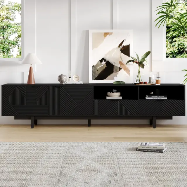 Moderna TV omarica z geometrijskimi linijami, prostorom za shranjevanje, 200*40*51 cm, za televizorje do 90 palcev.