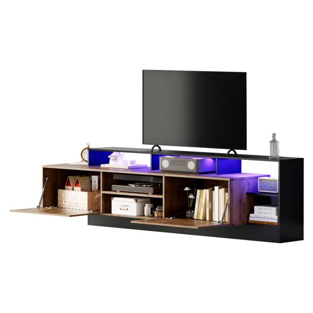 Moderna TV omarica za do 70 palcev z LED zaslonom, lesena/črna
