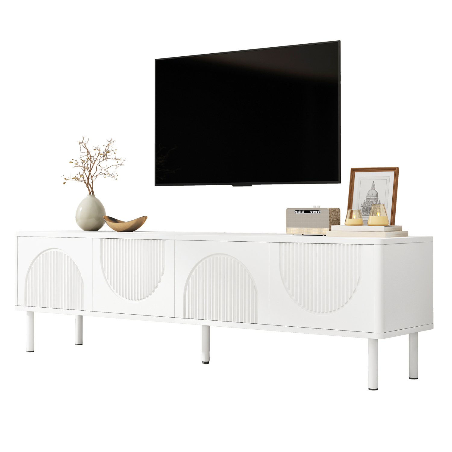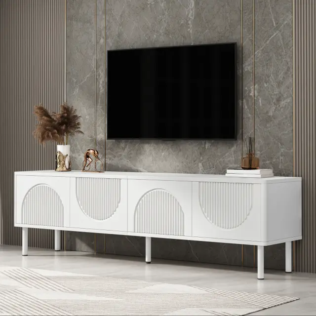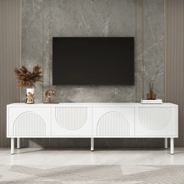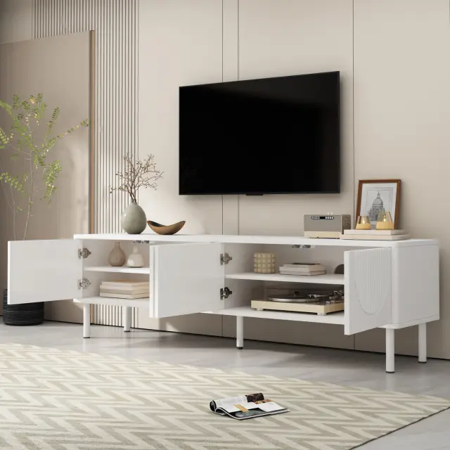 Moderna TV stojnica širine 180 cm s prostorom za shranjevanje in upravljanjem kablov – minimalističen dizajn