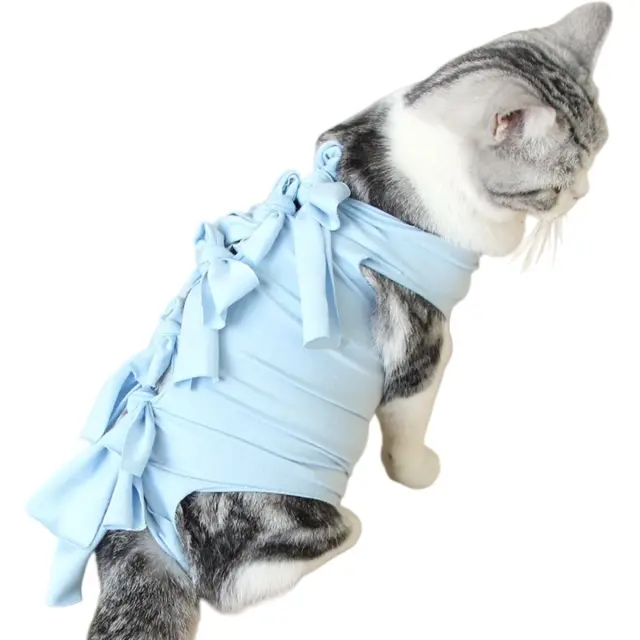 Modra Mačja Obleka za Okrevanje - Zračna Zaščita Kirurških Ran za Hišne Živali L