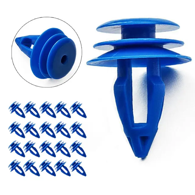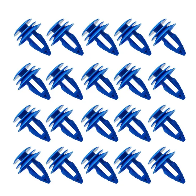 Varno pritrjevanje: Te modre najlonske zakovice zagotavljajo varno in zanesljivo rešitev za pritrjevanje avtomobilskih oblog, vratnih kartonov in oblog blatnikov. Njihova robustna zasnova zagotavlja trden oprijem, preprečuje ropotanje in ohranja celovitost notranjih in zunanjih komponent vašega vozila. Dosledna vpenjalna sila enakomerno porazdeli pritisk, kar zmanjšuje tveganje poškodb okoliških materialov in zagotavlja dolgotrajen, profesionalen zaključek.