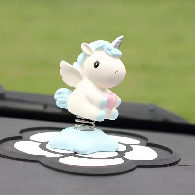 Modri avto, dekoracija avtomobila, obrti, majava glava, risana lutka iz smole