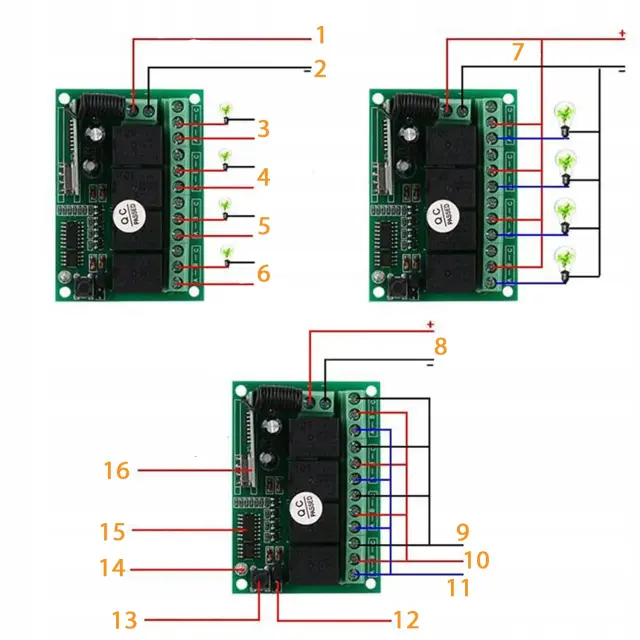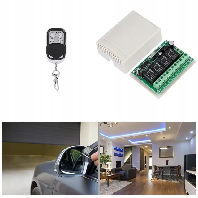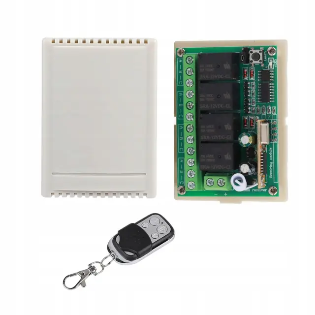 Rosfix Set Brezžični Rele Modul 433MHz – 4 Kanali, 12V DC, 100 m Domet, Pilot z 4 Gumbi | 75×54×29 mm