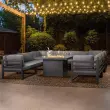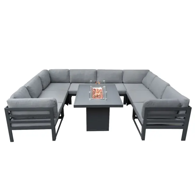 Ta modularna sedežna garnitura, izdelana iz vrhunskega sivega aluminija, se ne ponaša le z dolgo vzdržljivostjo, ampak izžareva tudi brezčasen slog. Njegova modularna zasnova z osmimi prostornimi sedeži omogoča prilagodljivo razporeditev, zaradi česar je vsestranski za različne priložnosti na prostem – naj bo to prirejanje živahnih srečanj ali ustvarjanje intimnega osebnega zatočišča.