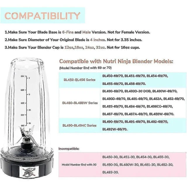 Moko rezilo za ekstrakcijo s 6 plavutmi, skodelice 24 oz, zdruljive z nutri ninja bl450-70