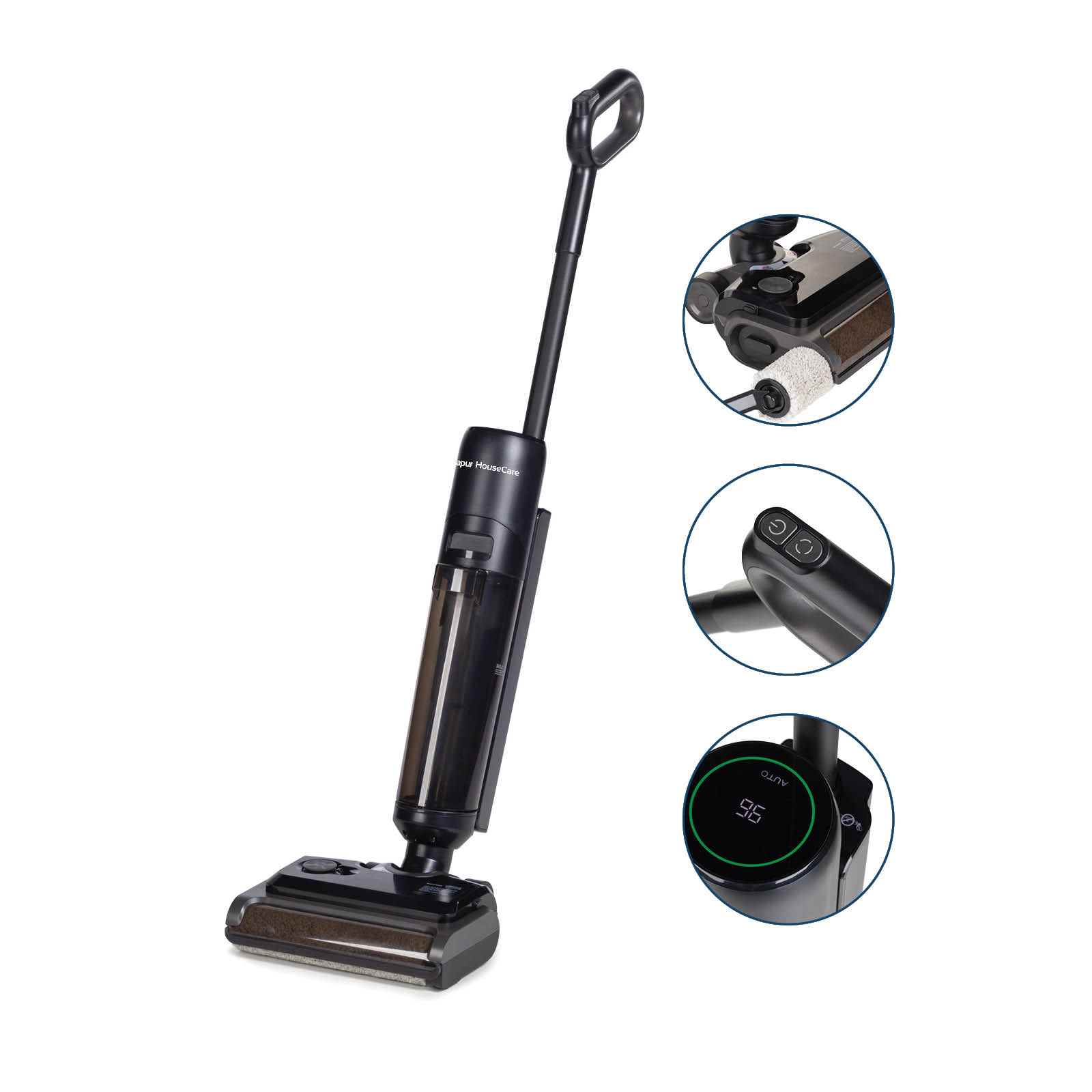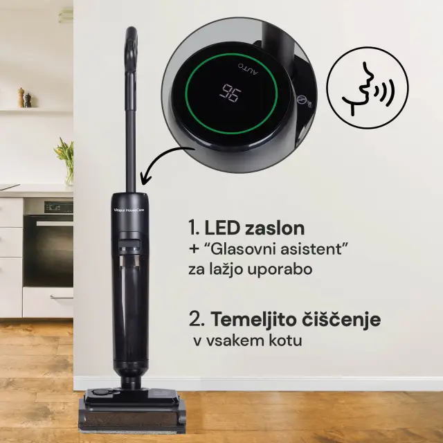 Brezžični mokro-suhi sesalnik ComboClean PRO nudi nov pristop k čiščenju, saj sesa in pomiva istočasno. S svojimi naprednimi funkcijami, zasnovanimi za hitro, preprosto in učinkovito čiščenje, ti brez napora pomaga do brezhibno čistih prostorov. Na voljo imaš 3 programe delovanja in funkcijo samočiščenja, ki jih izbereš samo z 1 gumbom. Pametni "AUTO način" samodejno zazna stopnjo umazanije in prilagaja sesalno moč. Dovolj velika rezervoarja za čisto in umazano vodo pa ti bosta omogočala, da lahko čiščenje 1 prostora opraviš brez prekinitev. Ker gre za brezžični pokončni sesalnik, je gibanje brez kablov neovirano in čiščenje še bolj udobno.
