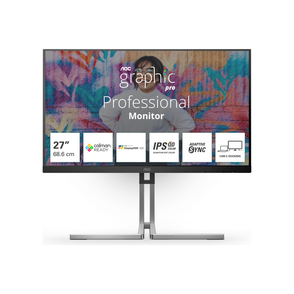 Monitor AOC 68,6 cm (27,0") Q27U3CV 2560x1440 Grafika 75Hz IPS 4ms HDMI DisplayPort USB-C 96W DP-Out 4xUSB3.2 USB-C-Out Pivot Zvočniki 2x3W