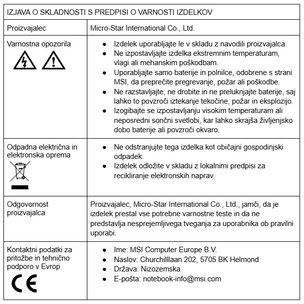 Slike o varnosti izdelka vsebujejo opozorila na embalaži izdelka in lahko vključujejo ključne varnostne informacije, povezane z določenim izdelkom.