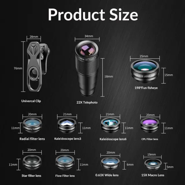Vsestranske možnosti leč: Razširite svoje fotografske zmogljivosti s priloženim kompletom leč. Ta komplet vključuje 0,63-kratni širokokotni objektiv, 198° objektiv ribjega očesa in kombiniran 120° širokokotni in makro objektiv. Ne glede na to, ali zajemate obsežne pokrajine, ustvarjalne učinke ribjega očesa ali zapletene posnetke od blizu, te leče ponujajo neskončne možnosti za mobilno fotografijo. Preprosto preklapljajte med lečami, da se prilagodite vsakemu scenariju fotografiranja in sprostite svojo ustvarjalnost. Makro objektiv vam omogoča, da zajamete najmanjše podrobnosti z osupljivo natančnostjo.