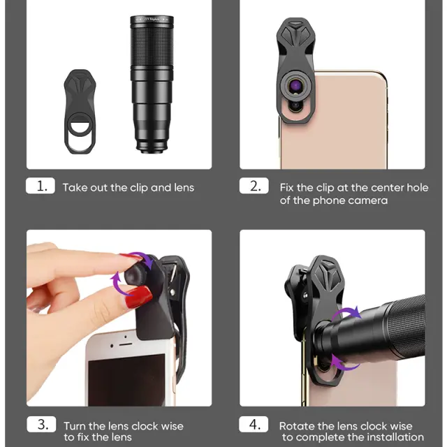 Univerzalna združljivost: Zasnovan za združljivost z 98 % pametnih telefonov, je ta monokularni teleskop in komplet leč neverjetno vsestranski. Priložena sponka za leče zagotavlja varno in stabilno pritrditev na vašo napravo, kar vam omogoča, da posnamete osupljive fotografije in videoposnetke brez težav. Ne glede na to, ali imate iPhone, Android ali drug model pametnega telefona, je ta komplet pripravljen izboljšati vašo izkušnjo mobilne fotografije. Uporabniku prijazna zasnova omogoča enostavno namestitev in odstranjevanje leč, tako da se lahko hitro prilagodite različnim situacijam fotografiranja.
