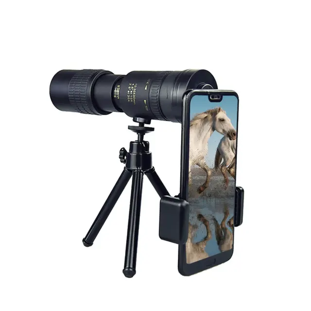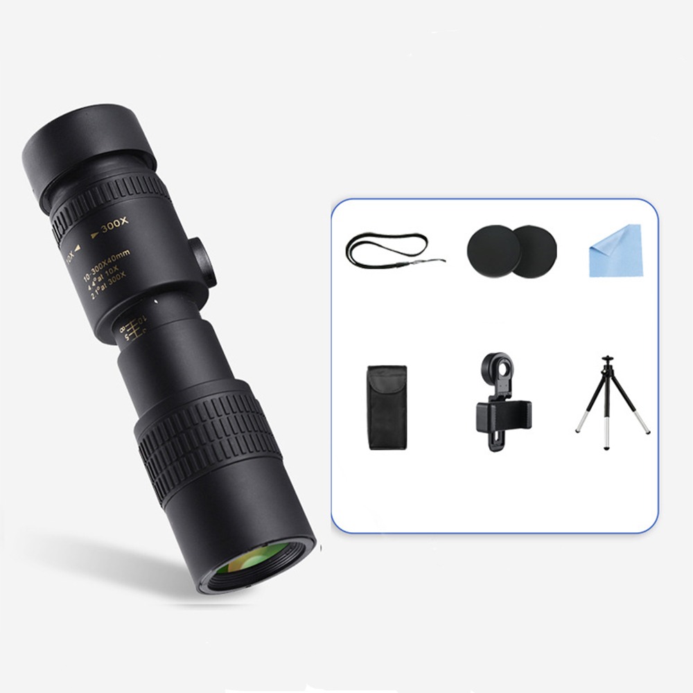 Monokularni teleskop z zoomom 10-40x s sponko za telefon in stojalom