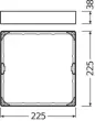 Površinsko nameščen okvir, kvadratni. Lastnosti izdelka: Majhna globina vgradnje. Robustno polikarbonatno ohišje. Vključen montažni pribor. Prednosti izdelka: Stranski kabelski vhod za električni priključek z ravnim profilom. Enostavna namestitev zaradi priložene vrtalne predloge. Področja uporabe: Splošna razsvetljava. Javni prostori. Stopnišča. Hodniki. Vhodni prostori. Trgovine.