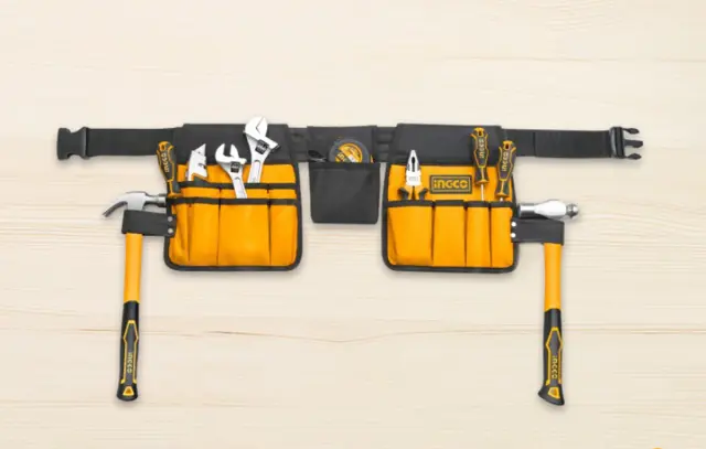 Pas za orodje INGCO ponuja 14 žepov za orodje in 2 držala za kladiva. Je izjemno trpežna in odporna na poškodbe. Lahko prenaša obremenitve do 10 kg.