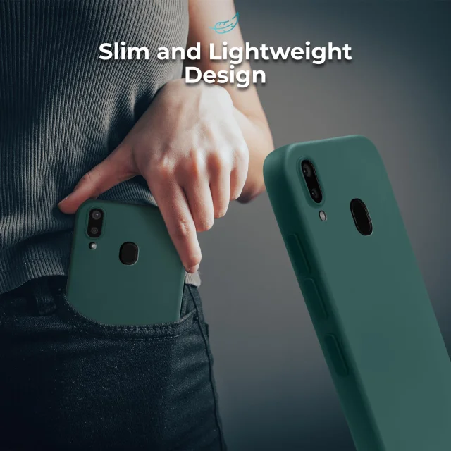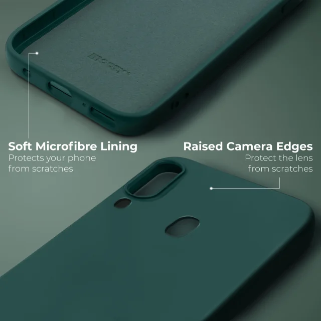 Moozy Lifestyle slog. Zasnovan za Samsung A20e, temno zelen - tekoči silikonski ovitek z mat površino in mehko podlogo iz mikrovlaken