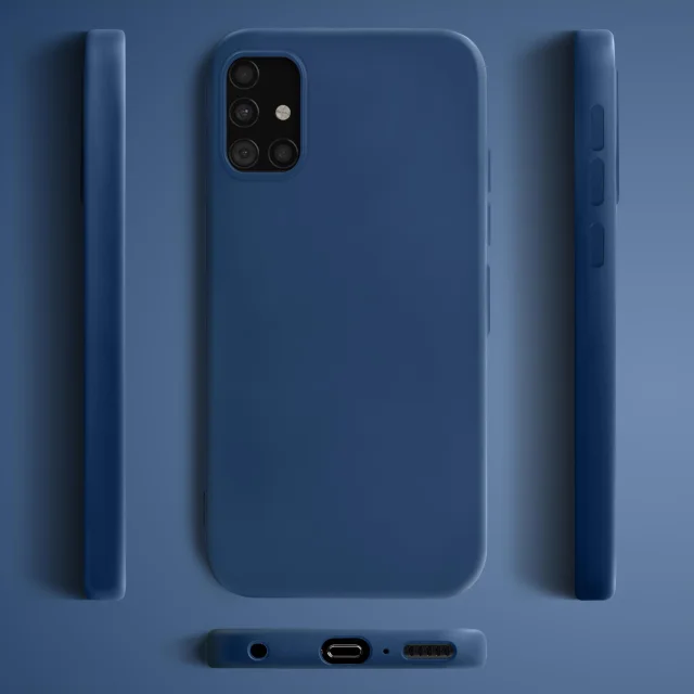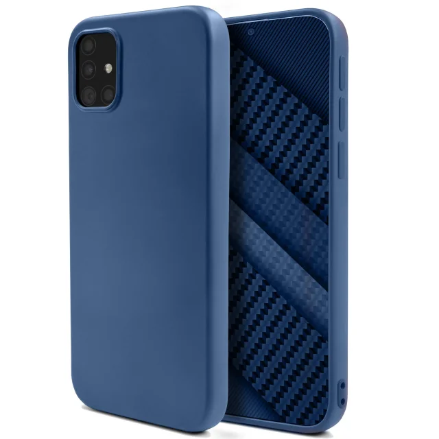 Moozy Lifestyle slog. Zasnovan za Samsung A51, polnočno modra - tekoči silikonski ovitek z mat površino in mehko podlogo iz mikrovlaken