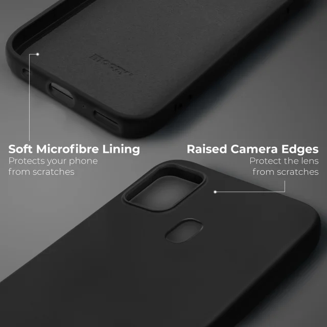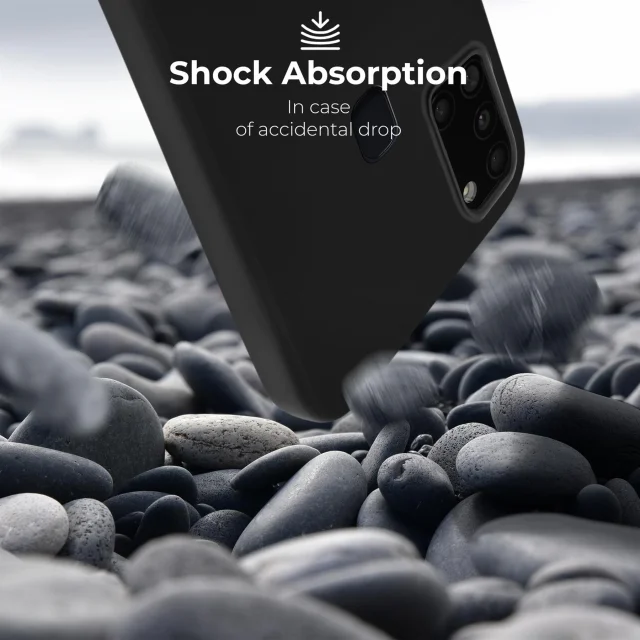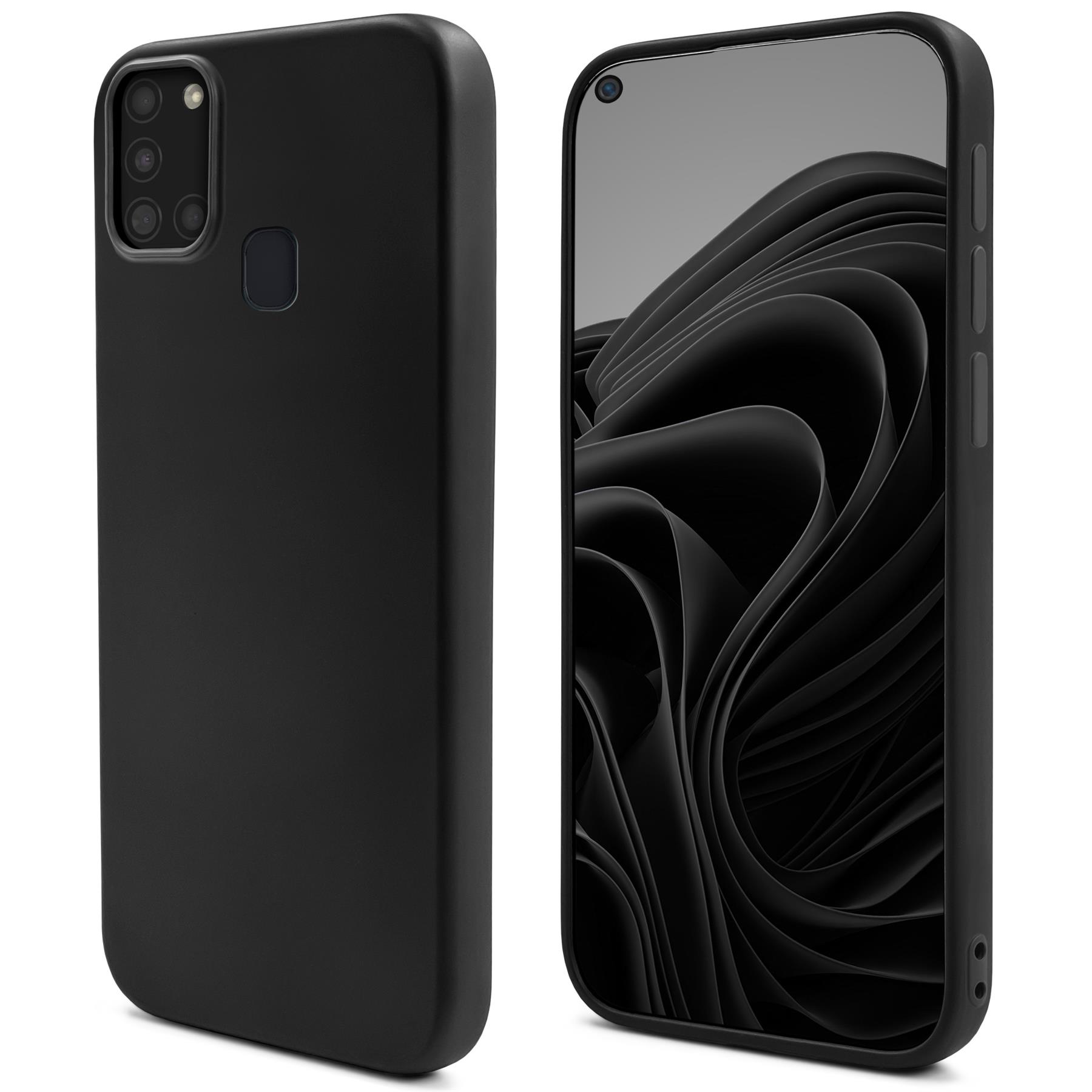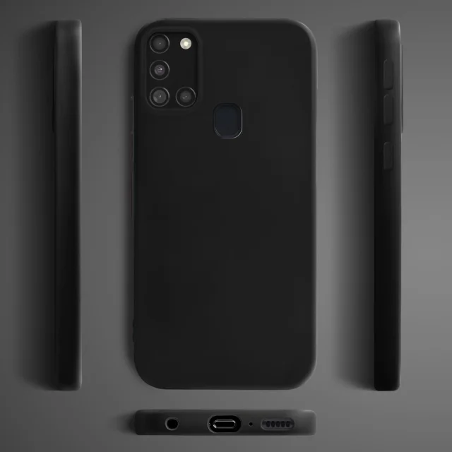 Moozy Lifestyle slog. Zasnovan za za Samsung A21s, črn - ovitek iz tekočega silikona z mat površino in mehko podlogo iz mikrovlaken