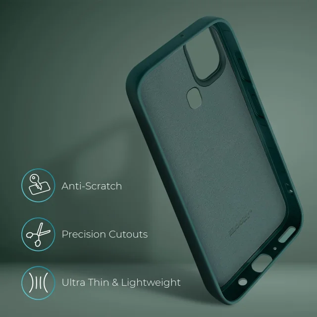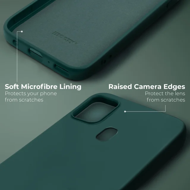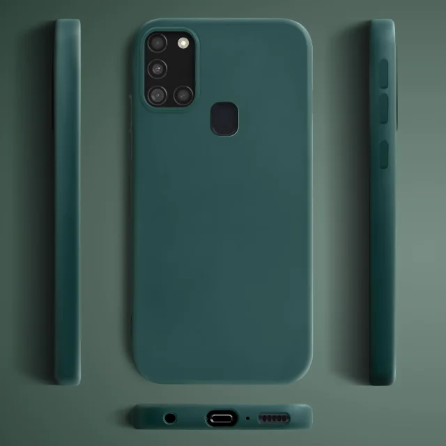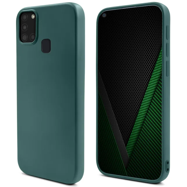 Moozy Lifestyle slog. Zasnovan za za Samsung A21s, temno zelen - ovitek iz tekočega silikona z mat površino in mehko podlogo iz mikrovlaken