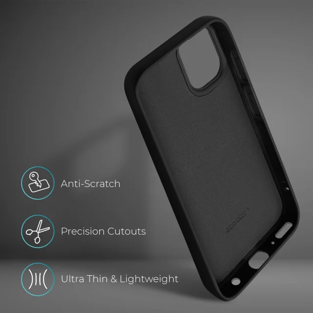 Moozy Lifestyle slog. Zasnovan za za Samsung A51, črn - ovitek iz tekočega silikona z mat površino in mehko podlogo iz mikrovlaken