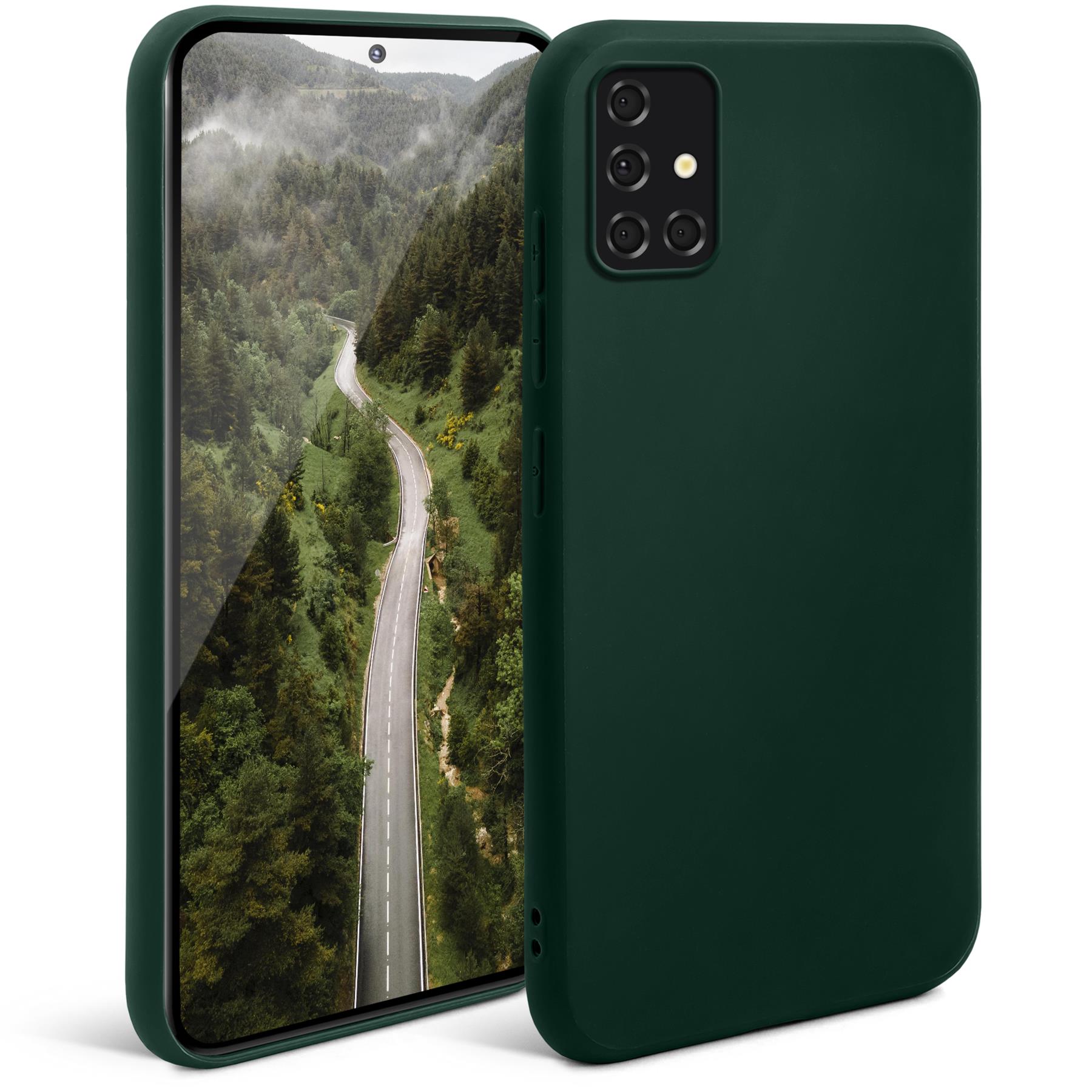 Moozy Minimalist Silikonski ovitek Series za Samsung A51, polnočno zelen - tanek mehak TPU ovitek z mat površino