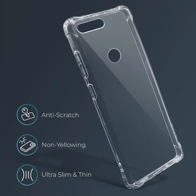 Moozy Shock Proof Silikonski ovitek za Huawei Y6 2018 - prozoren, kristalno čist ovitek za telefon, mehak TPU ovitek