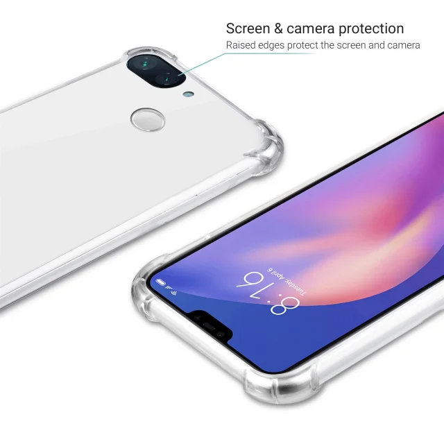 Moozy Shock Proof Silikonski ovitek za Xiaomi Mi 8 Lite, Mi 8 Youth, Mi 8X - prozoren, kristalno čist ovitek za telefon, mehak TPU ovitek